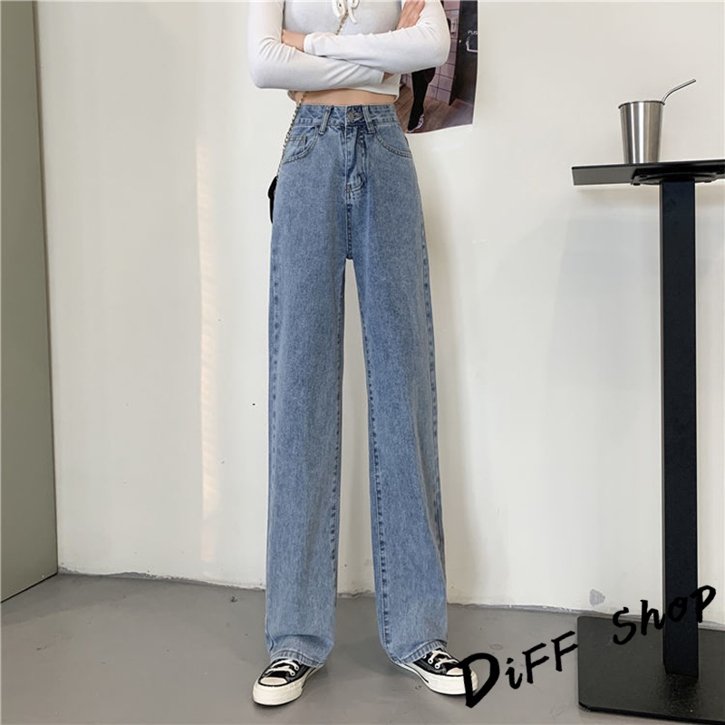 【DIFF】韓版寬鬆顯瘦高腰牛仔褲 寬褲 褲子 長褲 休閒褲 女裝【P102】
