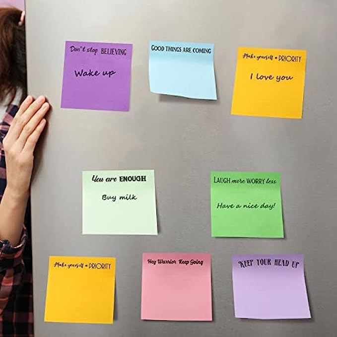 • Wide applications: the colorful sticky notepads are suitable for writing messages, notes, shopping lists, schedules, to do lists, etc., which can be pasted on the desk, refrigerator, wall, door and kept in the bags, helping to remind people to do something important or trivial