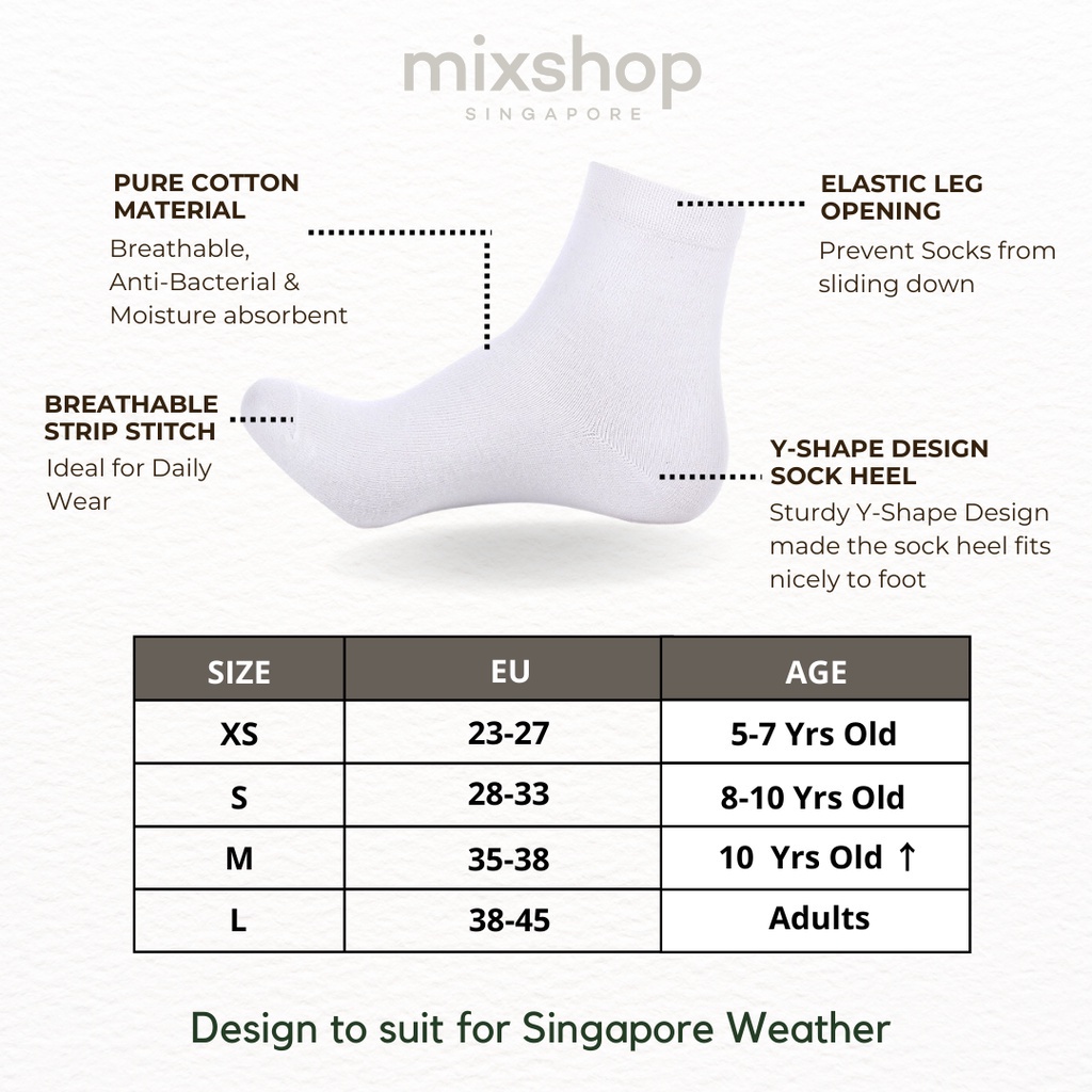 [3 Pairs] mixshop Student Basic School Socks / Kindergarten Primary Secondary Adult Socks [SG READY STOCK]