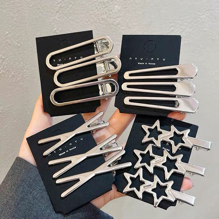 3PCS Sweet Cool Metal Cutout Hair Clip Star Side Bangs Clip Women Forehead Broken Hair Duckbill Clip Hair Ornament