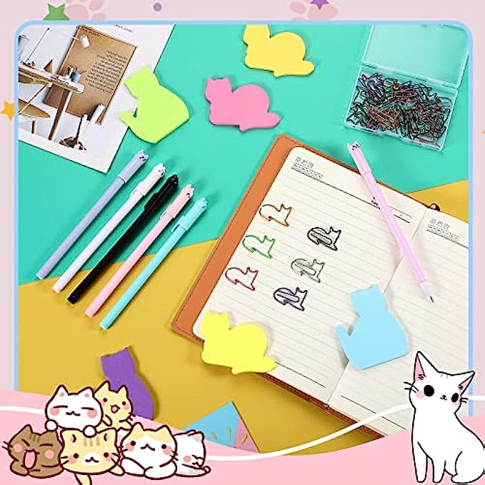 • Cute Cat Stationery Set: you are provided with 6 packs of cat self adhesive notes of 2 styles, 6 pieces of cat gel ink pens, also comes with 30 pieces of cat shape paper clips, sufficient quantity can meet your daily use and replacement needs, which are good gifts to cat lovers, girls, kids and women