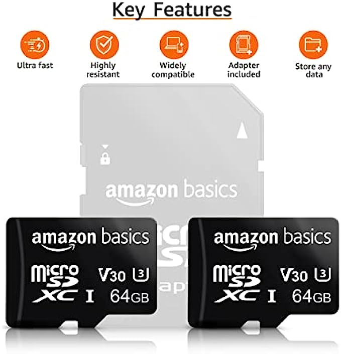 • Includes a 64 GB microSDXC memory card and a full size SD adapter
