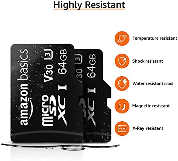 Amazon Basics microSDXC Memory Card with Full Size Adapter, A2, U3, Read Speed up to 100 MB/s, 64 GB - Pack of 2