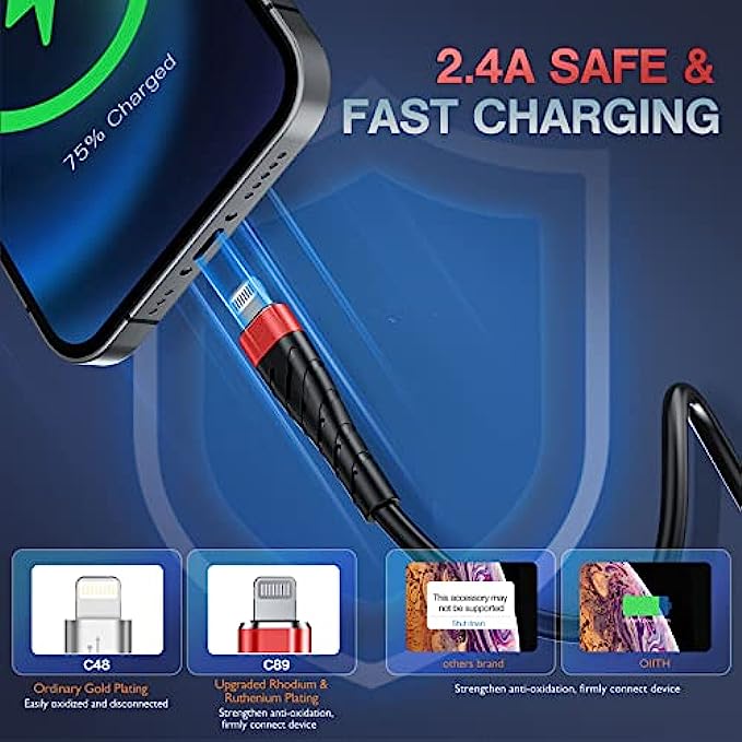 • [ Upgraded C89 Connector ] - Brand-new Rhodium & Ruthenium Plating C89 apple certified connector, strengthen anti-oxidation, firmly connect devices. No loose and will not bitten by pets.