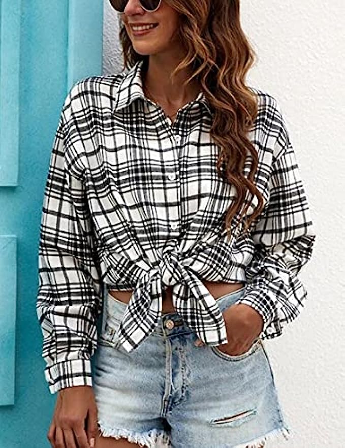 Bozanly Flannel Buffalo Plaid Shirts for Women Oversized Button Down Shacket Blouse Tops
