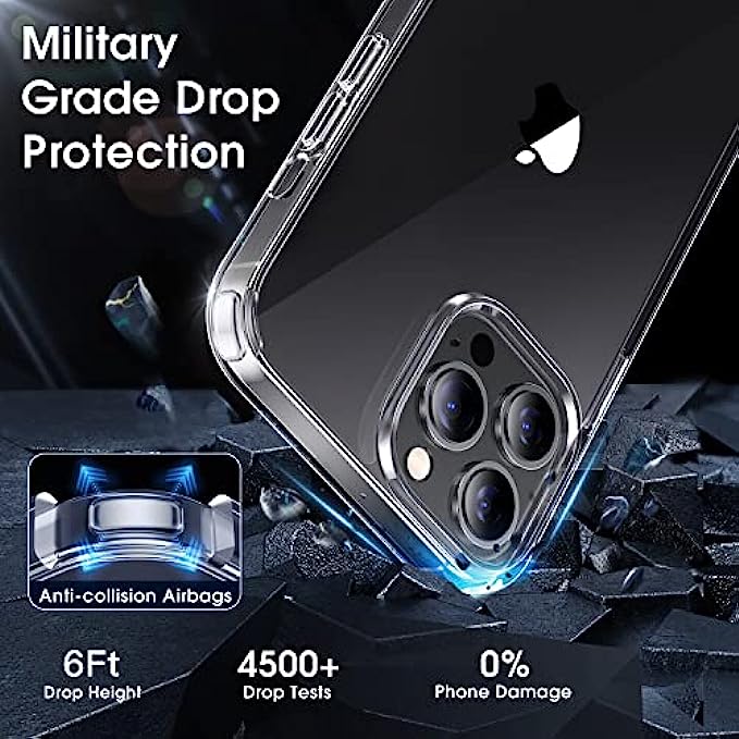 • [Crystal Clear & Never Yellow]: Using high-grade Bayer's ultra-clear TPU and PC material, allowing you to admire the original sublime beauty for iPhone 13 Pro Max while won't get oily when used. "Never yellow" thanks to the nano-grade diamond anti-oxidation coating which can effectively resist 99.9% of yellowing caused by ultraviolet rays and sweat.