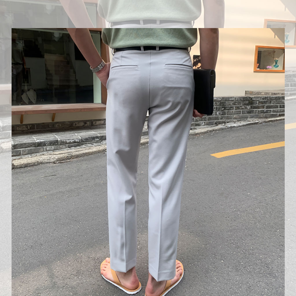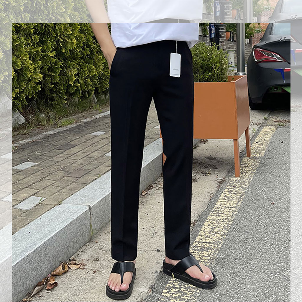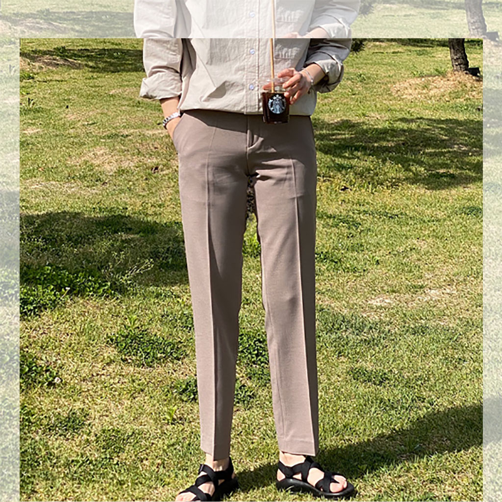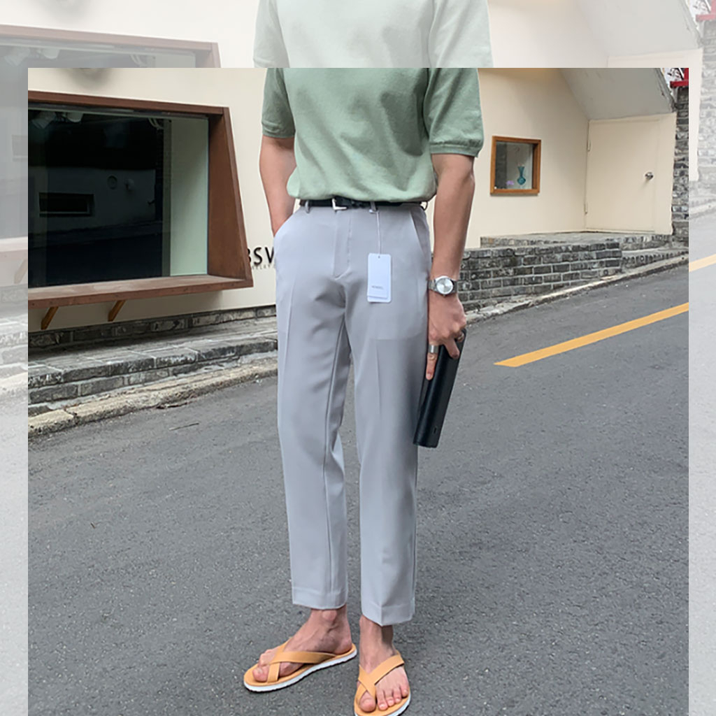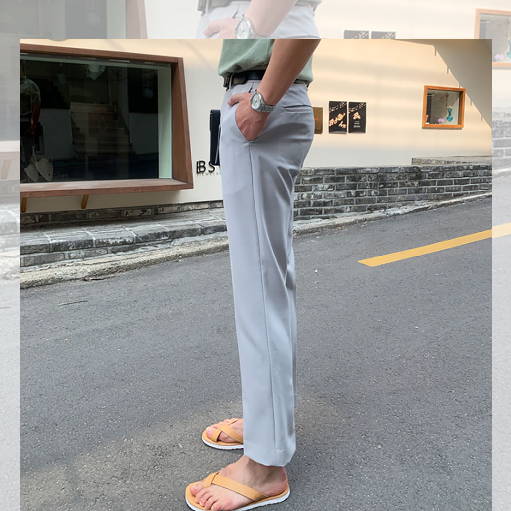 [Local Delivery] Korean Men's Slim Fit Pants Thin Ice Silk Breathable Casual Long Pant Fashion Trousers