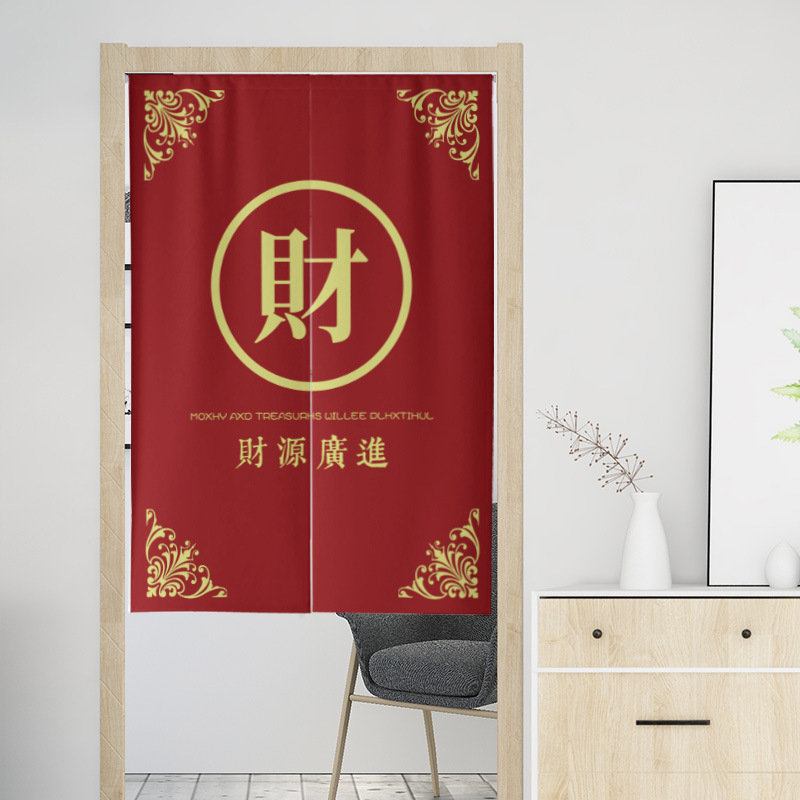 Customize Door Curtain for Kitchen Store Opening Decoration Cotton Thicken Long Doorway Partition Curtain Velcro Tape Rail Curtain with Rod