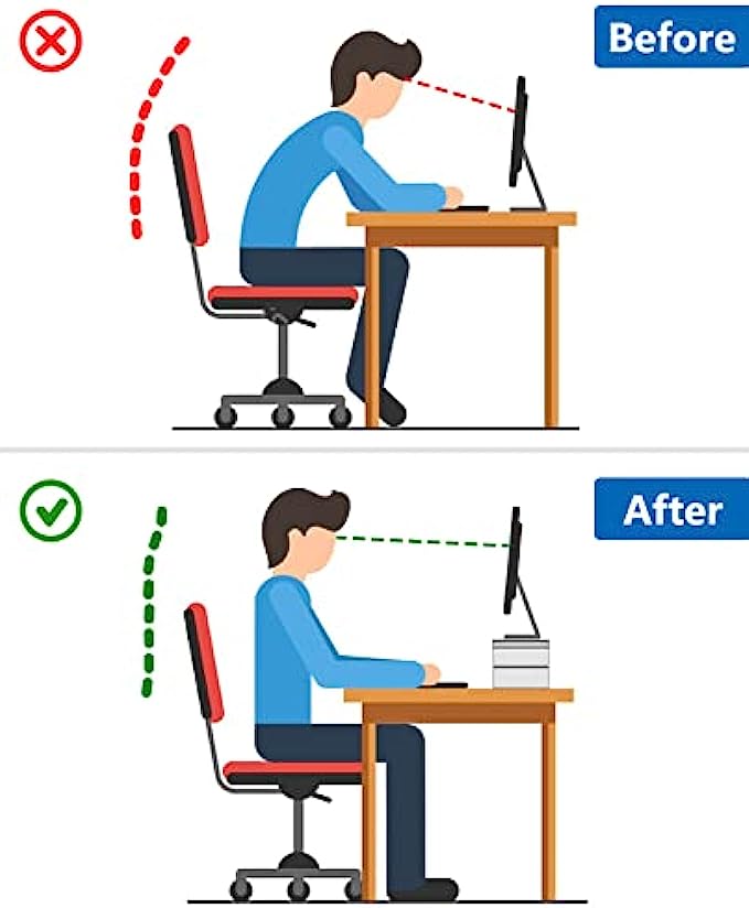 • 【MAINTAIN A HEALTHY SITTING POSTURE】The most comfortable posture when looking at the computer with your head slightly raised, but the mismatch between the height of the chair and the table bothers us. This desktop monitor riser can lift a monitor up to 5.5 inches, allowing you to get the best viewing angle. The computer monitor stand can not only improve work efficiency, but also relieve neck and back pain.