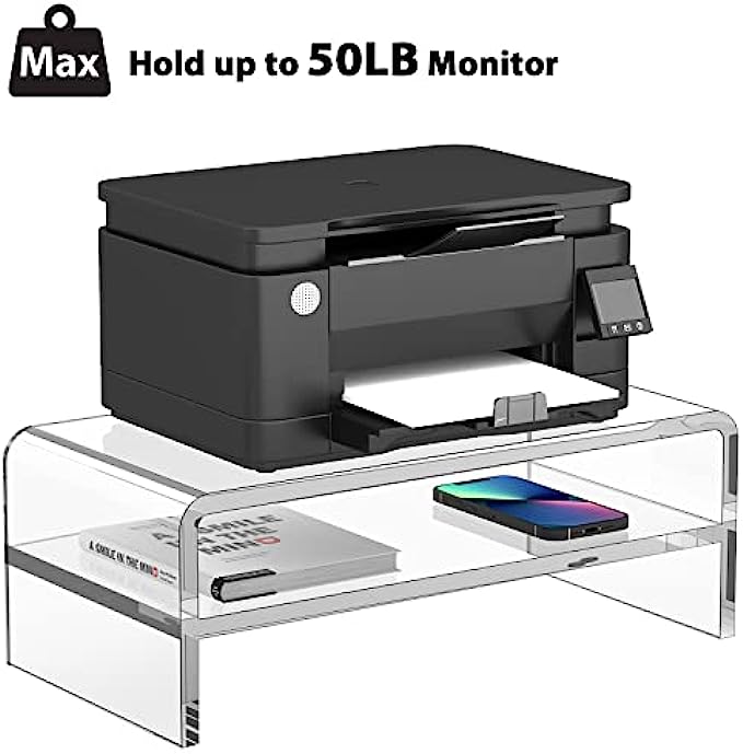 • 【RUGGED AND DURABLE】The thickness of the acrylic computer monitor stand panel is 0.4 inches, and the acrylic has enough rigidity to withstand up to 50 pounds. Acrylic computer stand can be used to place common electronic products such as computer monitors, laptops, printers, etc.