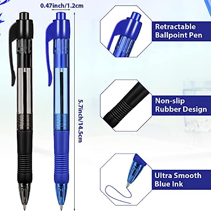 • Package includes: you will receive 300 retractable ballpoint pens, 150 black pens and 150 blue pens, sufficient quantity pens can meet your daily needs and replacements, you can also share them with your friends, family and colleagues