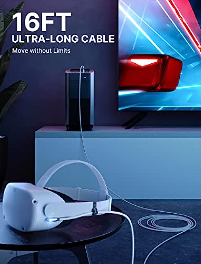 • Long 16ft Link Cable: Durable and flexible design allows you to travel in the VR world without being restricted, enjoying every moment in the VR world freely.