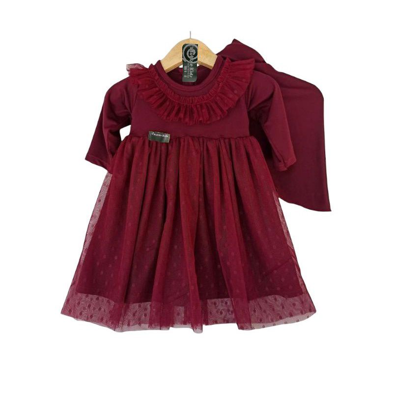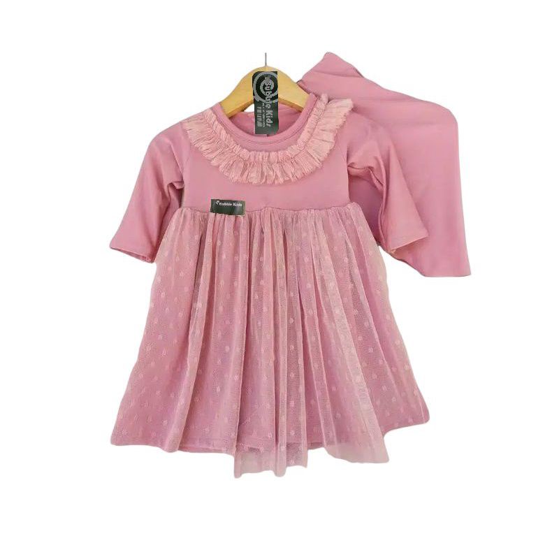 KATUN Gamis Hijab Baby Lace Tutu Tile Dotti (0-4 Years) Muslim Clothing Children Toddler Girls Plain Cotton Party mix