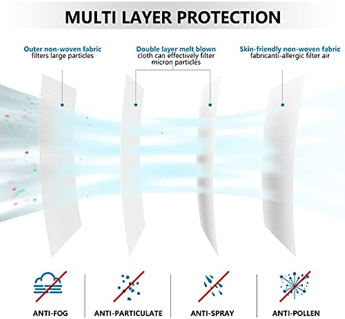 • 【Thinner and Lighter】The masks are made of 4 layers but the protective effect is the same as the 5 layer mask, thinner and in lightweight, more breathable. Suitable for daily wear even in hot weather.