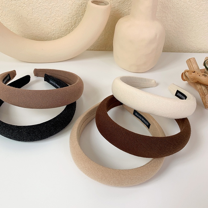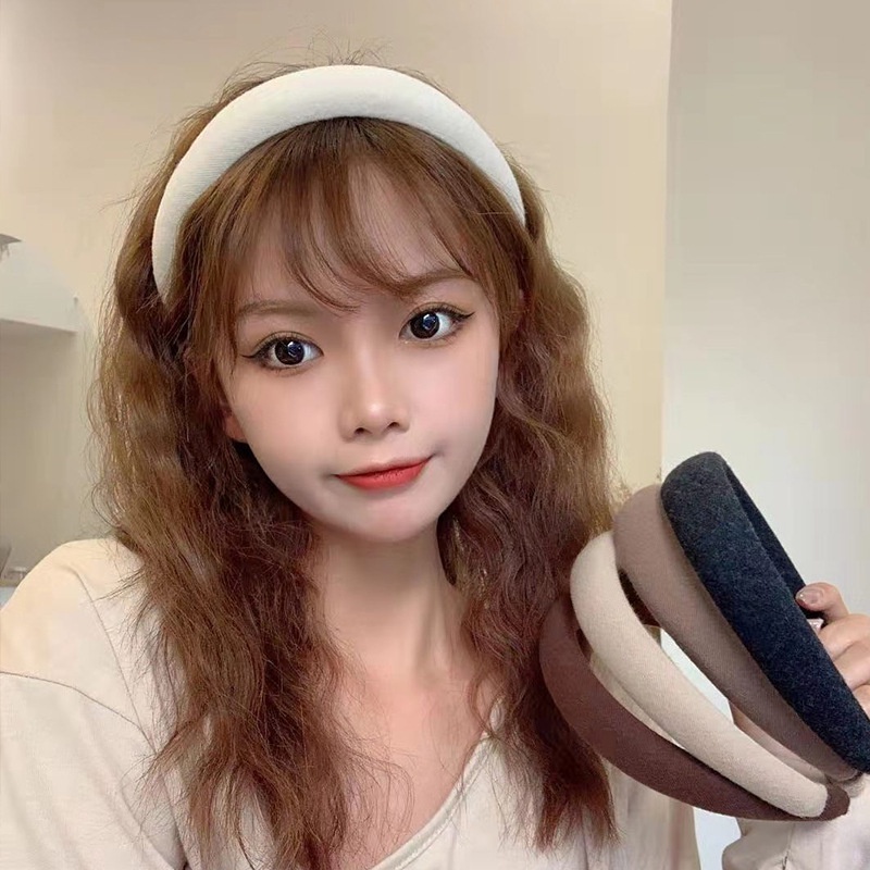 Korean Version of Ins Sponge Wide Version Headband Female Net Red Simple Temperament Pure Color Hairband