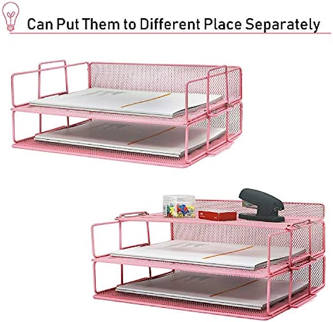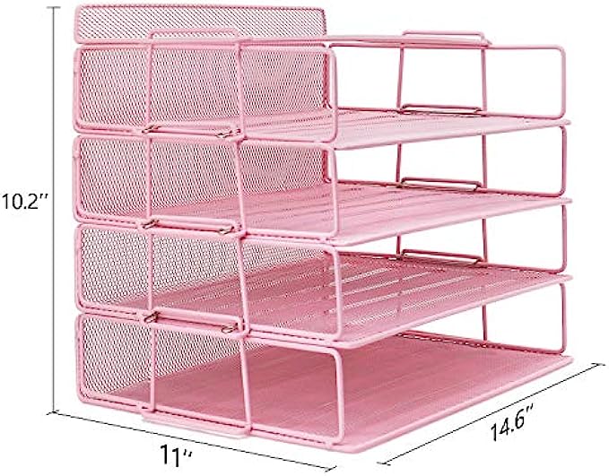 LUCYCAZ Paper Tray - Letter Tray Desk Organizer, 4 Tier Stackable Paper Tray Pink File Organizer for School and Office