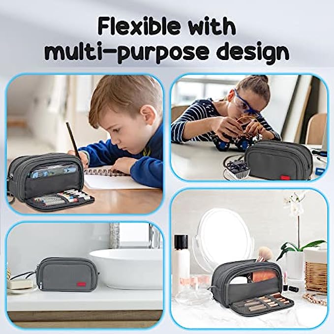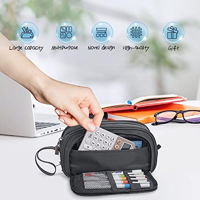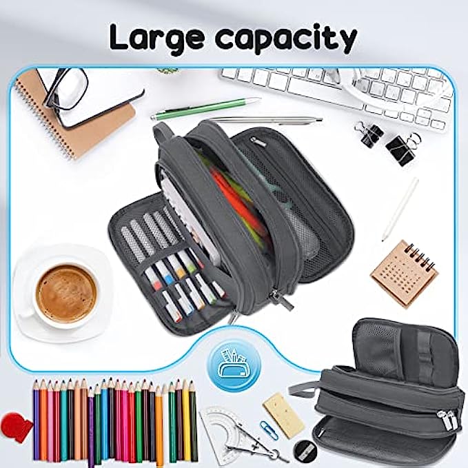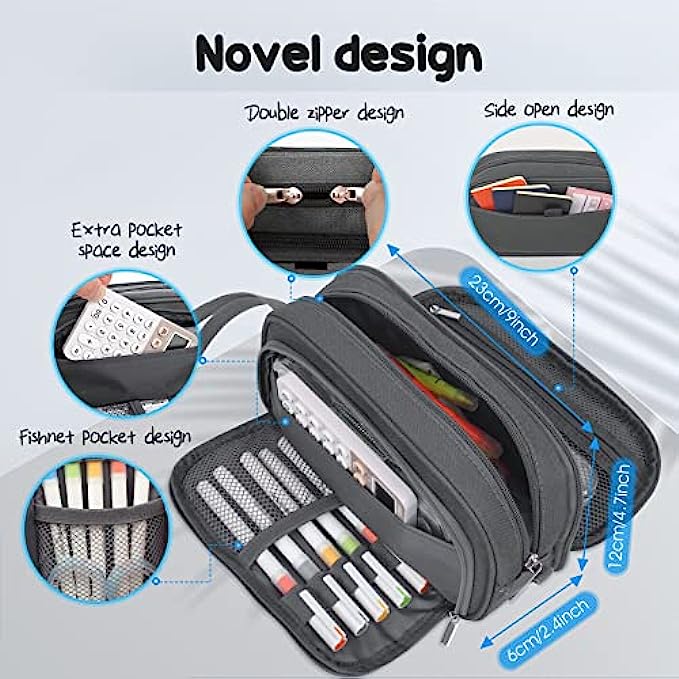 • 【Innovative storage space for your convenience】- Our pencil case is innovatively designed with 4 compartments. The zipper pocket can store notes, the other side pocket can store commonly used cards. Both the middle zipper area and the outer zipper adopt the double zipper design, which eliminates the direction restriction brought by the zipper. The scientific space design not only makes the storage clear, but also makes it convenient for you to take the items you need.