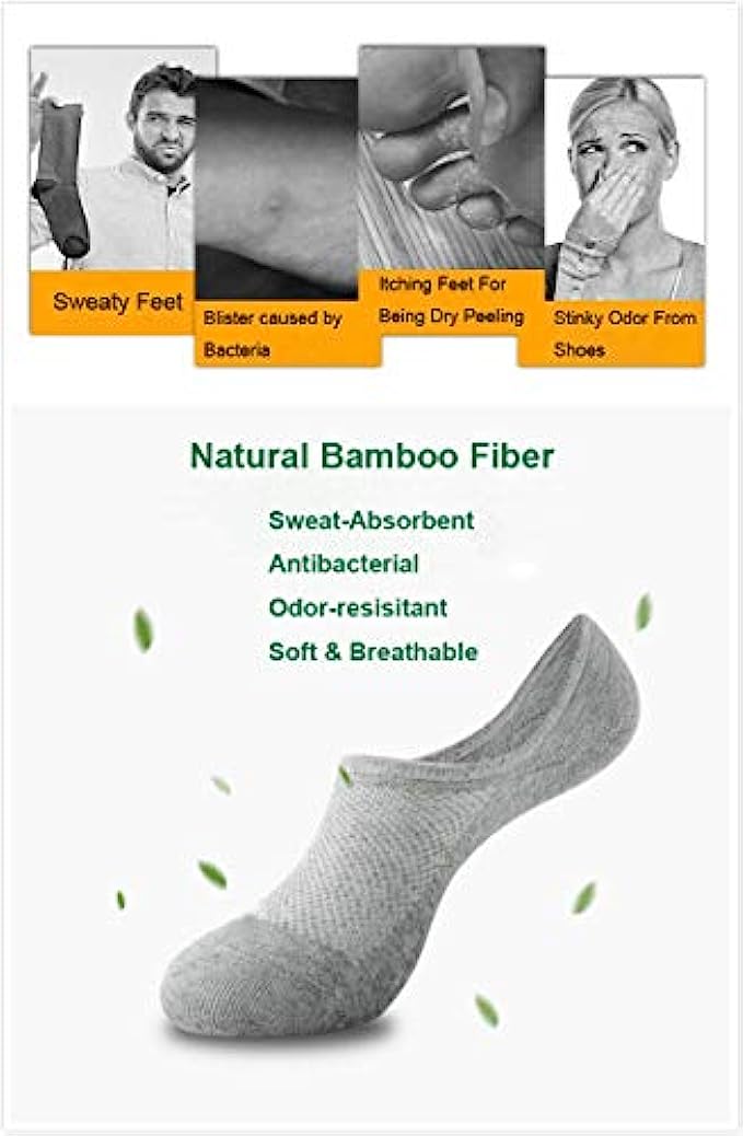 • No Show Socks with Non Slip Silicone: These no show socks have 4 silicone bands and 1 silicone triangle snug to your feet, make sure zero chance for slipping off. Low cut design remain almost hidden inside in many shoes like tennis shoes,sneakers,booties,running shoes,canvas shoes,etc.
