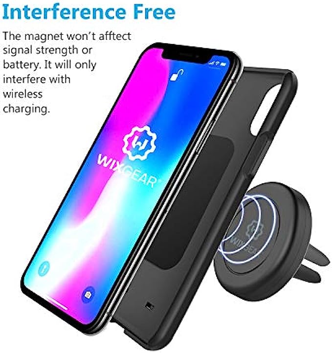 • STURDY WIXGEAR AIR VENT: This high quality rubber construction of the base of the mount is unique and very functional as well. It guarantees that the base of the mount will solidly hold the magnetic head of the mount, to help keep your smartphone in place, regardless of road vibrations or impacts.