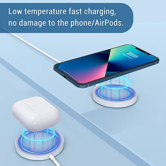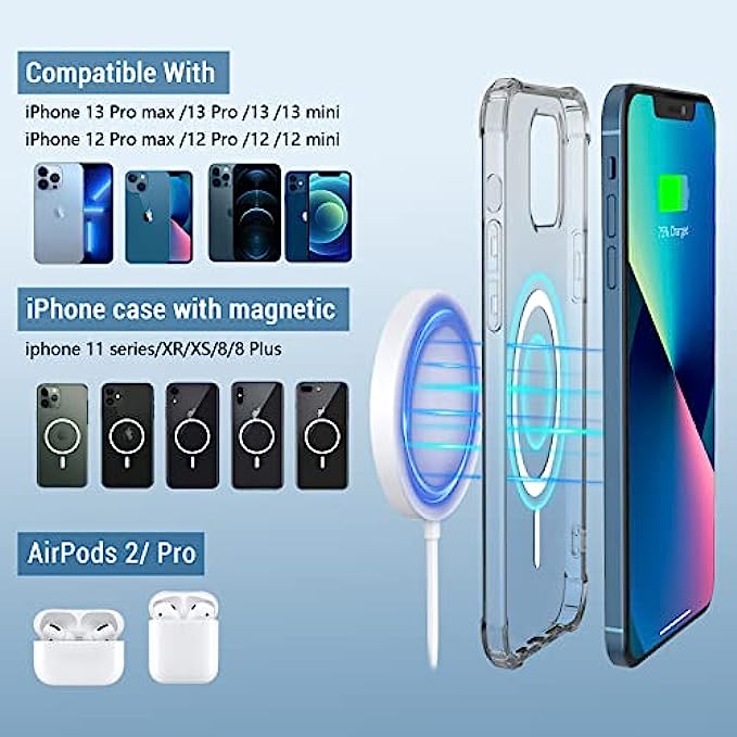 • 【Specifically for iPhone 13/12 Series】With New magnetic technology makes wireless charging a snap. Perfectly wireless charging pad compatible with magsafe charging for iPhone 13,13 Pro,13 Pro Max,13 mini; iPhone 12, iPhone 12 Pro, iPhone 12 mini iPhone 12 Pro Max.Up to 7.5W secure wireless charging. And with models of AirPods Pro /3 & 2 with a wireless charging case.