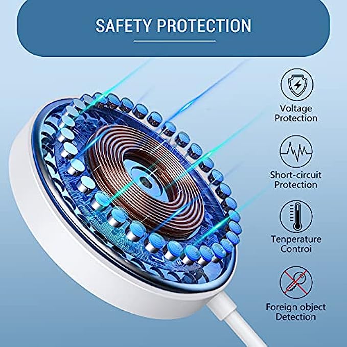 • 【Superior Safety】The Qi certificated wireless magnetic phone charger prevents the charger and your phone from overcharging, over current, over voltage, over heating, and short circuit. Provides you with a better and safer charging experience.The optimized magnetic design makes charging easier , improving energy conversion and reducing heat while charging.