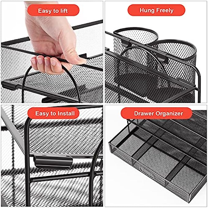 • 【Space Saving】 Outfit your space with the Hanging Pencil Holder (Built-in Hooks) and the top drawer organizer, which offers everything you need to keep your desk neat so you can stay on-task and do great work.
