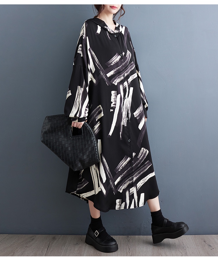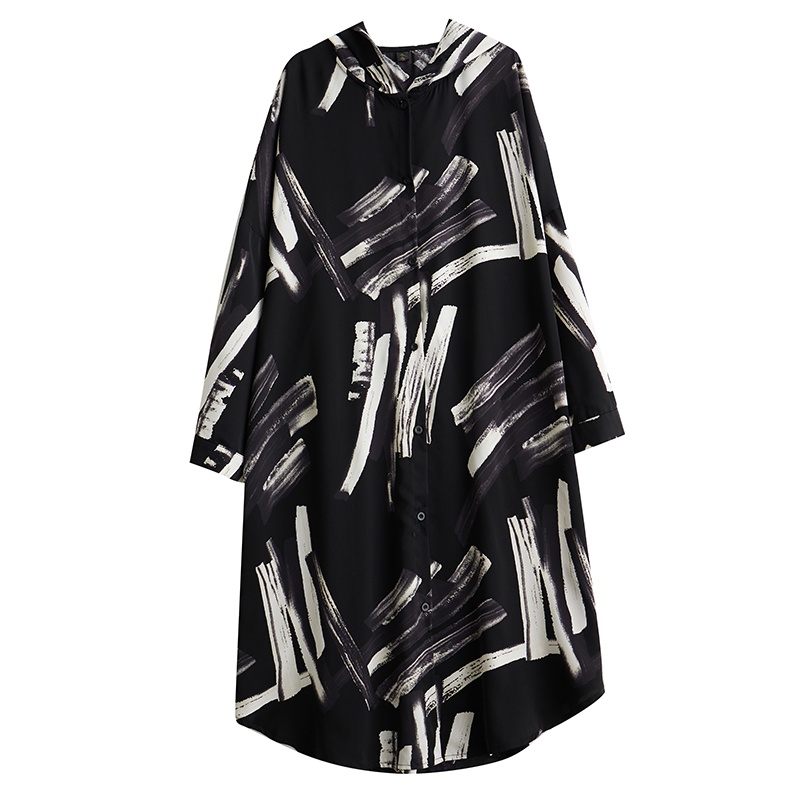 Oladivi Fashion Print Long Sleeve Button Dress for Women 2023 Spring Autumn Casual Loose Midi Dresses Oversized Clothing Plus Size Tunic Robe 5869 JM004