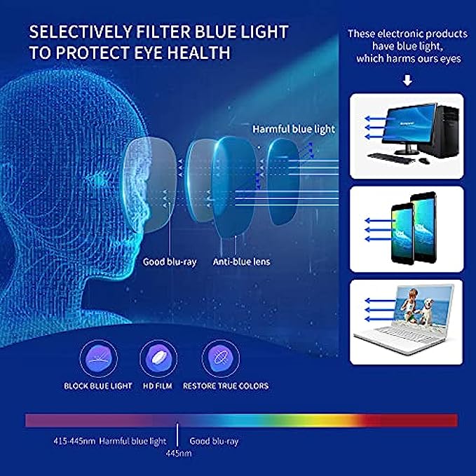 • WIDELY USED FOR ALL OCCASIONS - The high-quality trendy Anti-blue light glasses can effectively block the harmful Bluray ,UV rays to protect your eyes and also add a fashion element to your daily wear. Ideal for outdoor activities, Reading, computer,Home, Office, travel, leisure and everyday wear.