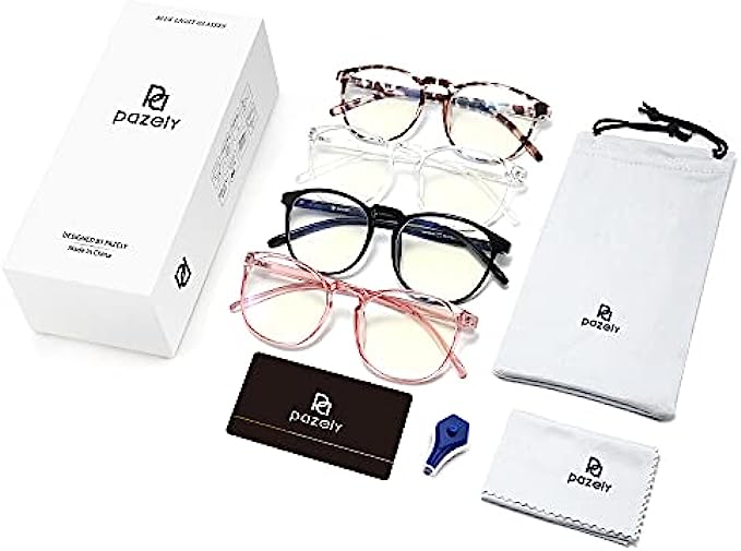 • SIMPLE YET CLASSIC ELLIPSE DESIGN - Without complicated patterns and strange designs, PAZELY presents you with the ultimate simplicity of classic fashion. This blue light glasses is suitable for both men and women. The simple ellipse lens shape and 4 pairs frame can be matched with different looks, suitable for various daily and formal occasions.