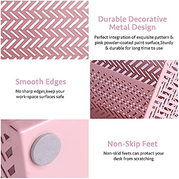 • 【Sturdy And Durable】:No assembly required! The mesh office organizer set is made of premium metal materials for effectively extending the life time and keeping great performance. Adopting electroplating technology to make the desk organizer to keep excellent glossy and dazzling color,wear-resistant,rust-proof, more solider than wood or plastic ones.