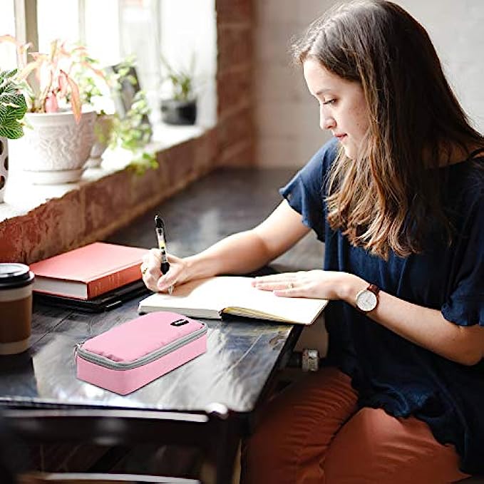 ProCase Pencil Bag Pen Case, Large Capacity Students Stationery Pouch Pencil Holder Desk Organizer with Double Zipper, Portable Pencil Pouch for School Office Supplies -Pink