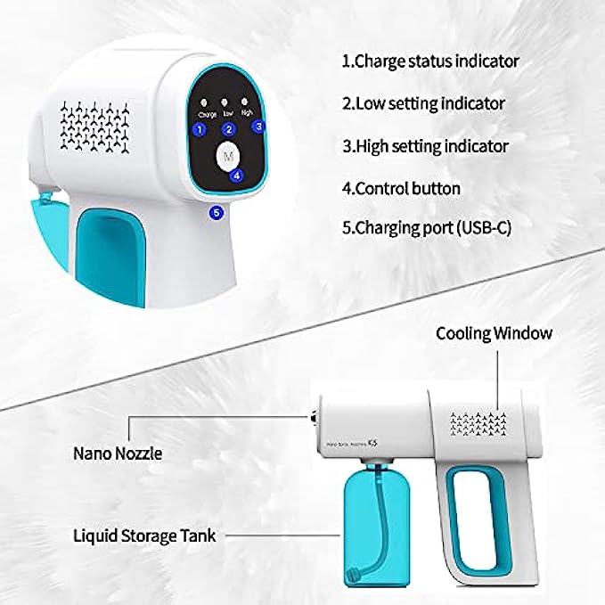 【Handheld Wireless Fogger】You can easily clean full rooms in under 5 minutes. More effective than manual hand wiping, pump spraying or mopping. The spraying range is about 2-4 feet. Nano sprayer gun can be sprayed directly on the surface of the human body, fabrics, home appliances and other objects.