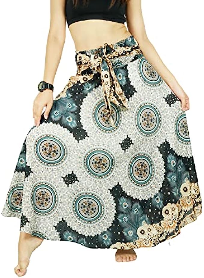 PumPumpZ Bohemian Gypsy Long Skirt for Women Hippie Boho Print Maxi Dress for Beach Dance Yoga. US Size 0-16