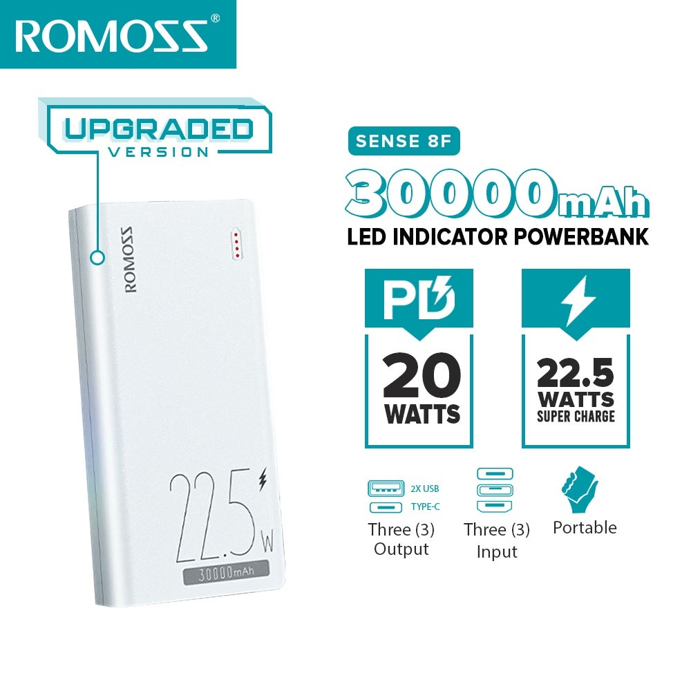 Romoss 30000mAh Powerbank Original Fast Charging PD Portable Charger Phone Battery Portable Source