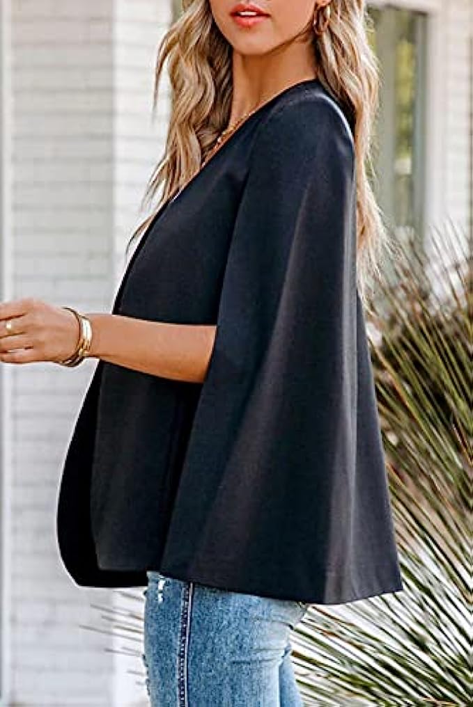 SHEWIN Womens Cape Blazer Split Sleeve Open Front Casual Jacket Coat Workwear Elegant Formal Cape Coat