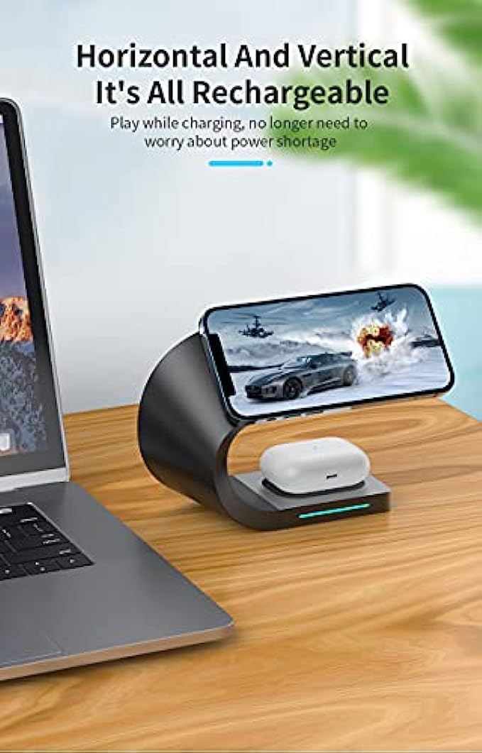 • 【Neat Desktop&Protection Equipment】 Wireless charging station only needs a cable to charge.It keeps your desk tidy and clean,which reflected the sense of high-tech.Wireless charging stand reduced the friction of USB or Lightning ports. Phone charging station is covered with a soft material,which can protect your device from accidental scratches.Phone and watch charging station base adopts non-slip mat design,prevents the devices from easily sliding off.