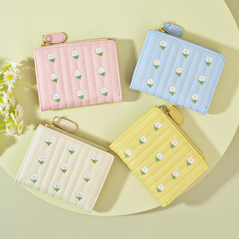 New Korean Version Embroidered Simple Cute Cropped Bifold Wallet For Woman