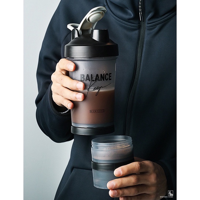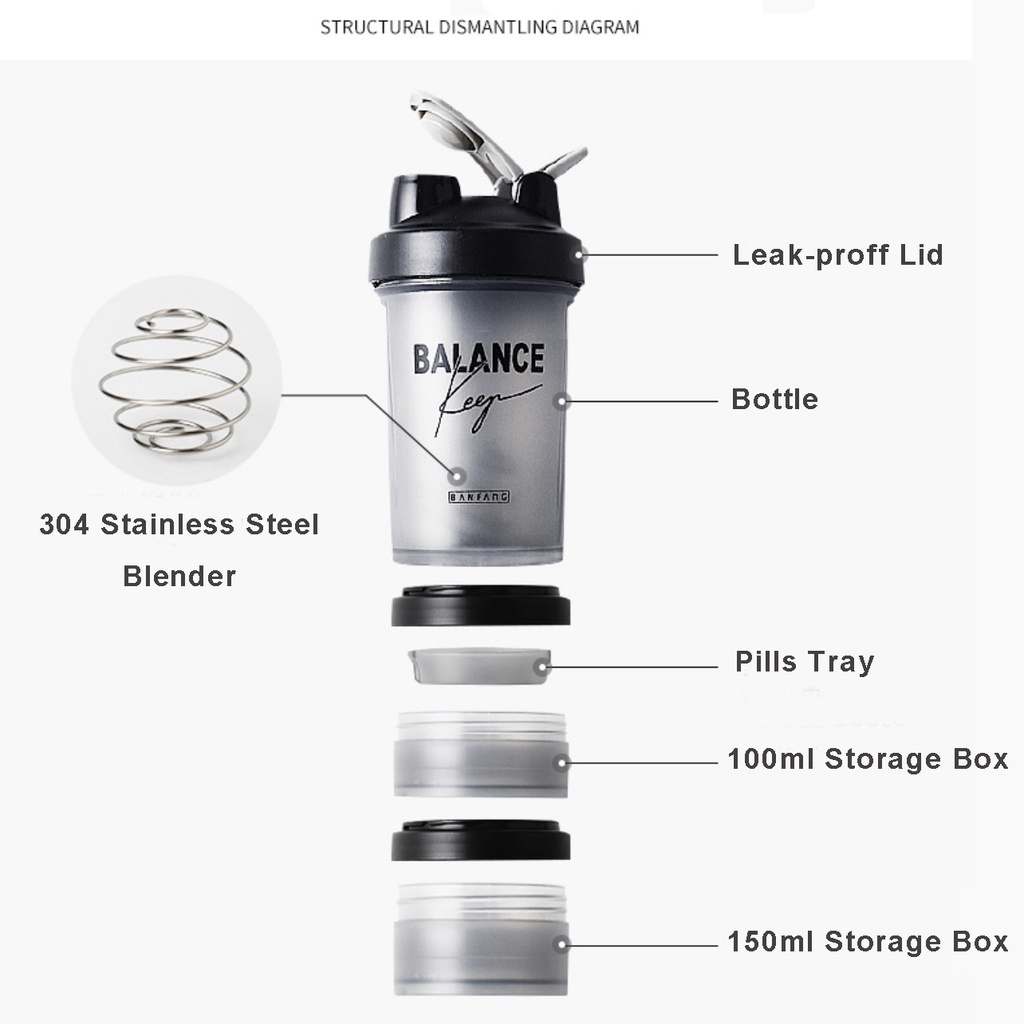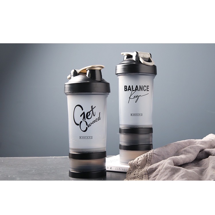 Shake Cup Protein Shaker Blender Bottle GYM Water Bottle Compartment Set 500ml