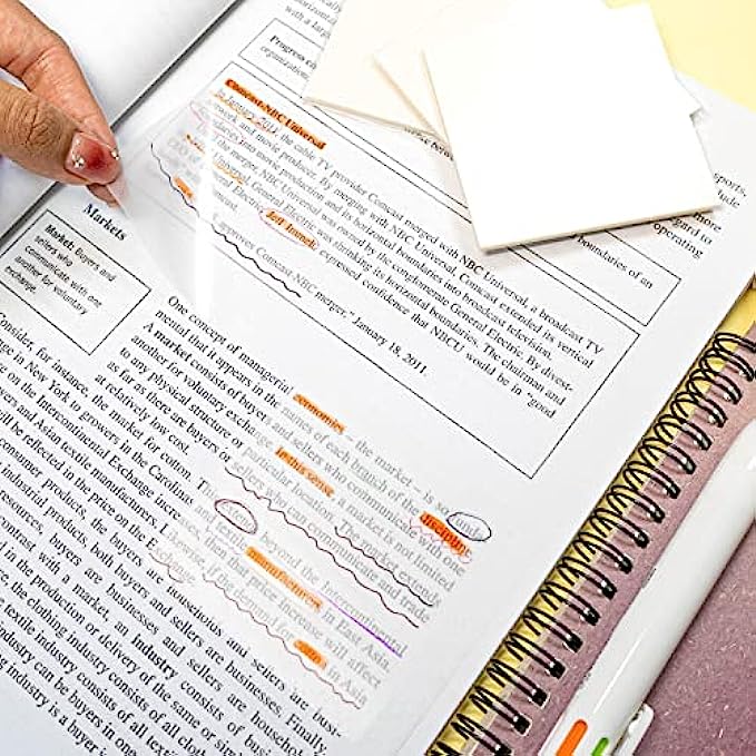 Transparent Design: Upgraded see through sticky notes, lies flat and almost invisible, jut stick it on books or documents, annotate, highlight or trace directly, the underneath text will not be covered, protect your books instead of leaving permanent marks on them when taking notes.
