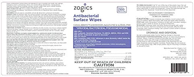 • EPA DISINFECTANT WIPES: Zogics EPA-registered disinfecting surface wipes are created with a powerful antibacterial formula to kill 99.9% of germs, of germs, viruses, and bacteria in just 15 seconds, and is effective against H1N1, MRSA, Flu, Strep, Salmonella, HIV-1, E coli, VISA and VRE, and many more.