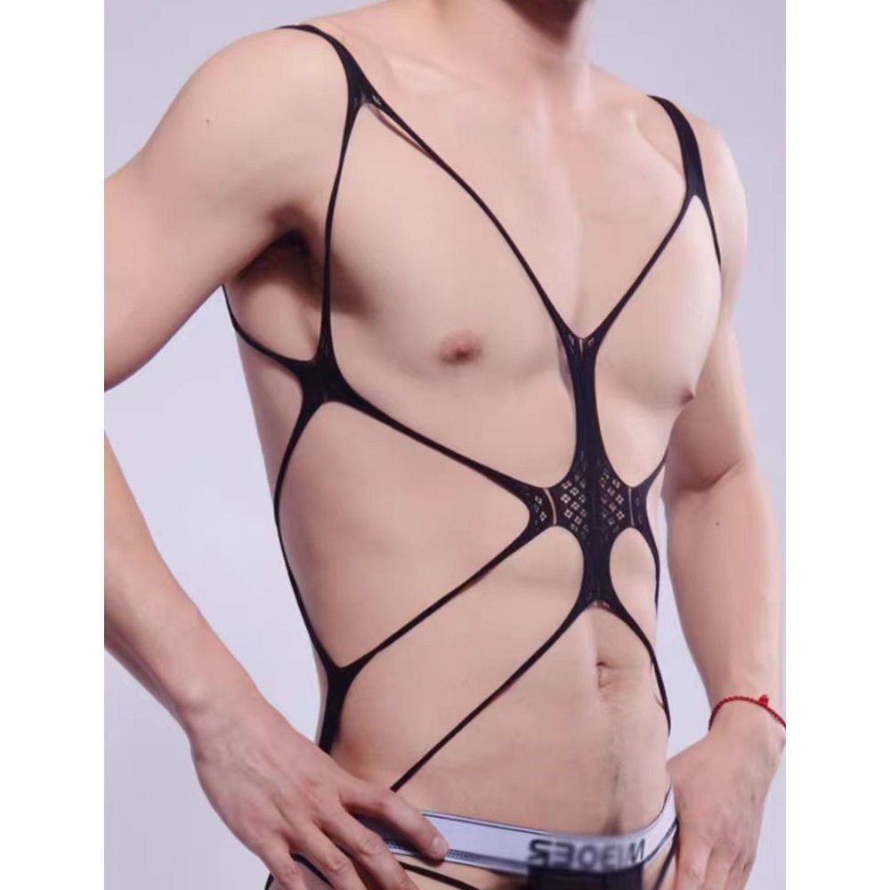 Bd137 Ready Stock European American Style Men's Sexy Hollow Stretch Bondage Tight-fitting Gauze Naked Revealing Body-showing Bed Temptation Bodysuit Young Boys Couples Sexy Sports Students Close-fitti