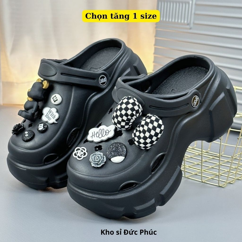 Crocs Height Increased Insoles Women Mules 6cm With Plaid Bear Pattern And Height Choosing 1 size Duc Phuc