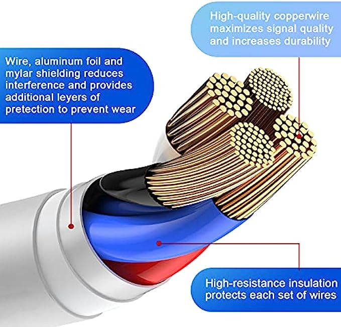 • Faster Charging & Sync: 20% Faster than other iPhone charging cords - After long-term testing for IOS lightning cable, we selected four-core higher quality copper wires to make, which makes charging faster and more stable. You can enjoy fast charging [2.4A] and high-speed data transferring [480Mbps].