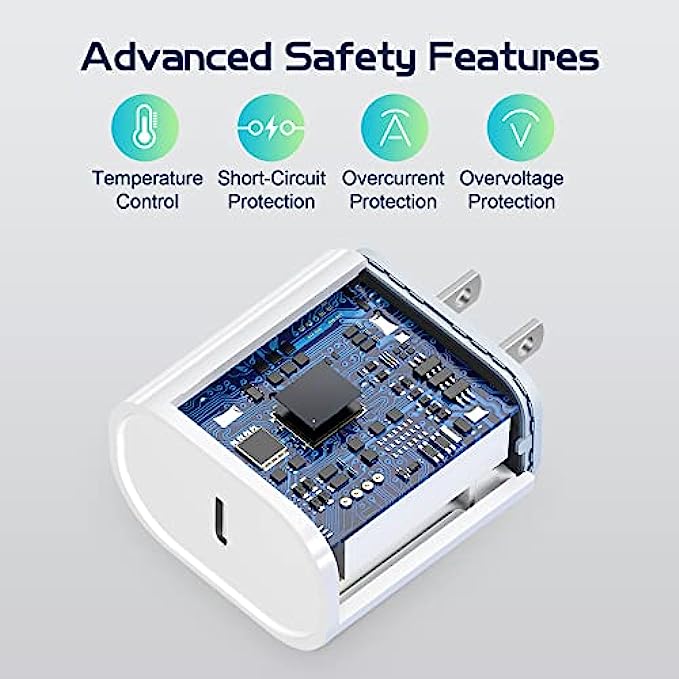 • What You Get : 1 pack of 20W USB-C iPhone charger and 1 pack of 6FT USB-C to Lightning charging cable are packed in a box,5-years worry-free refund and replacement guarantee. If you have any quetions, don't hesitate to contact us! We promise to solve your problems within 24 Hours!