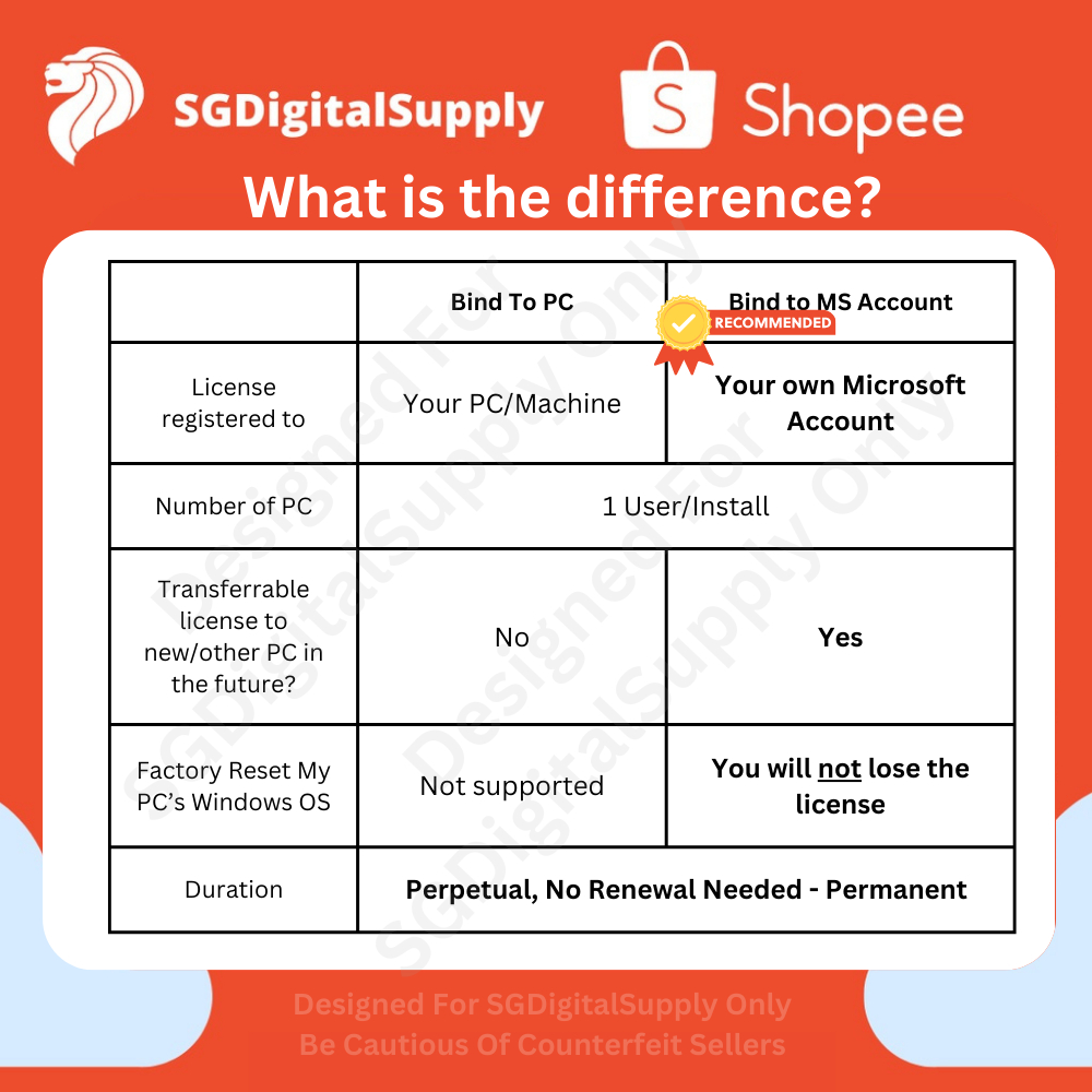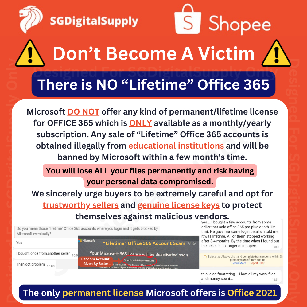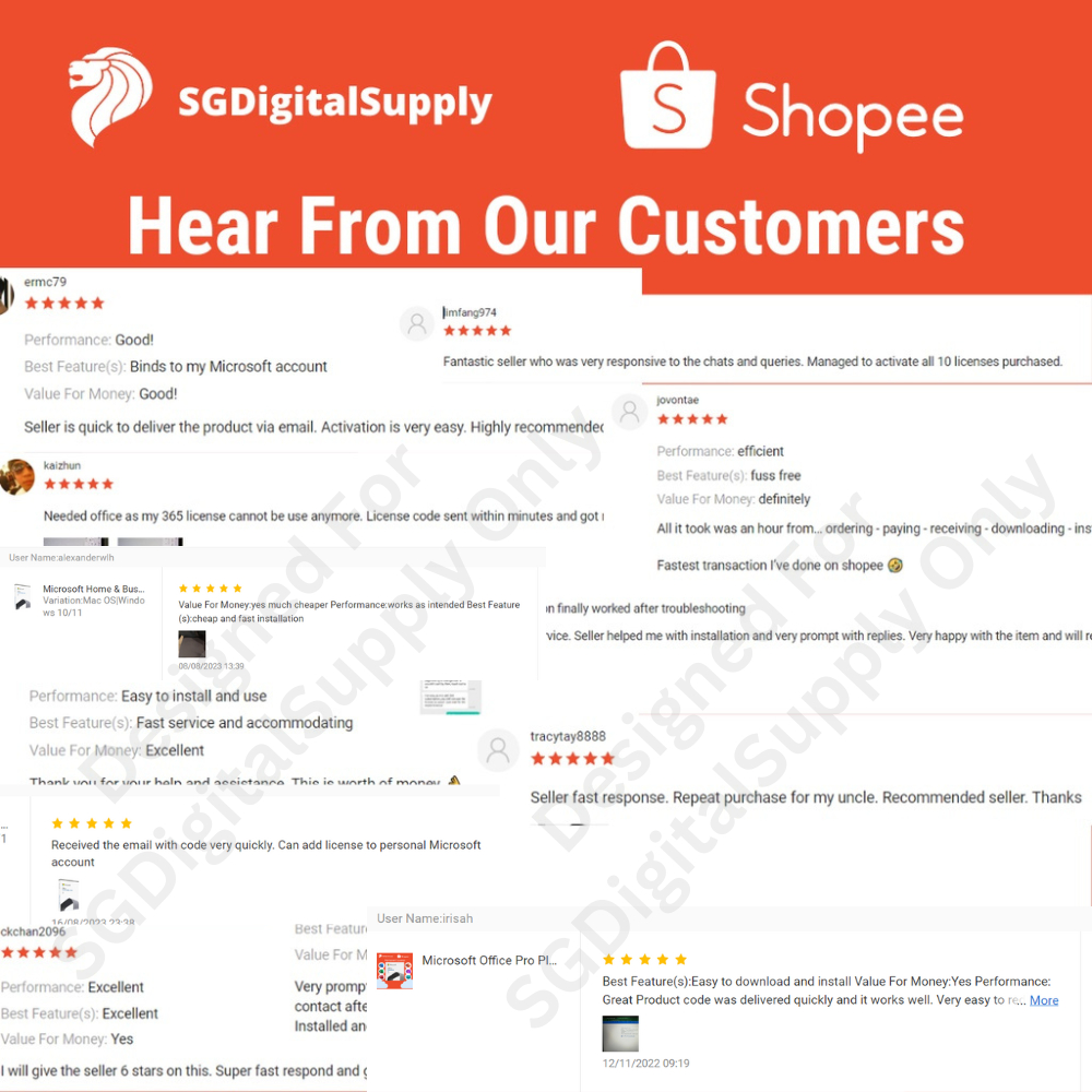 Performance:trustworthy Value For Money:of course Best Feature(s):authentic Tbh, I tried getting Ms office 365 before from a seller in Shopee which has high sell volume and promise life time login but after 1/2 year, the ID was disabled by MS. After reading from this seller that 365 can only last for a year, I decided to get from him the 2021 version which is binds to pc. Within minutes, I got the authenticated keys for the office. Looks legit since it’s using key to login.