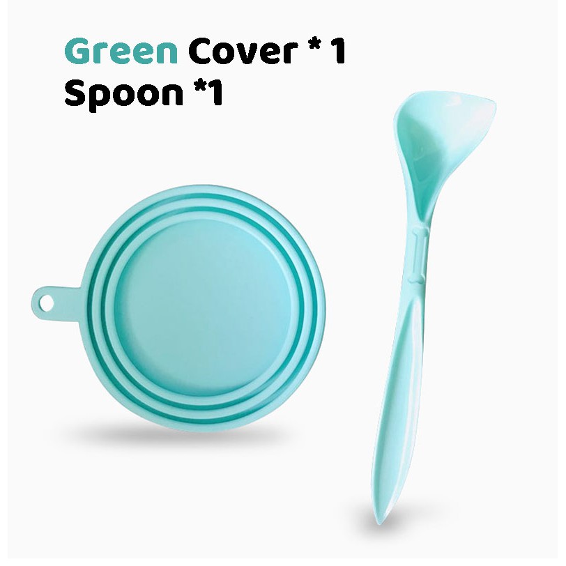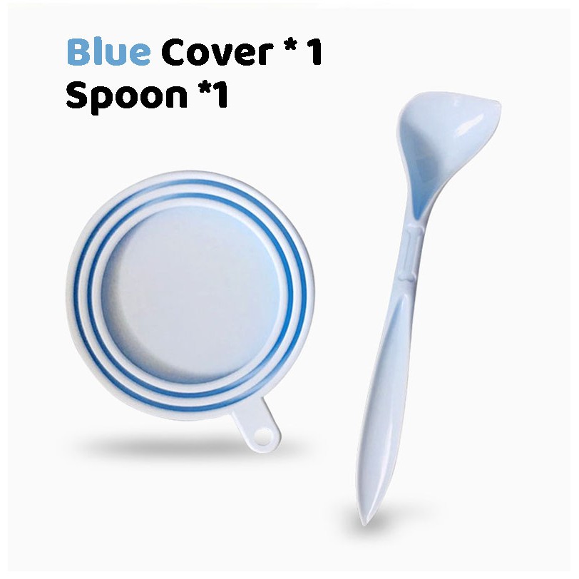 Pet Food Can Silicone Cover and Spoon Dogs & Cats Storage Tin Cap Lid Reusable Random Color