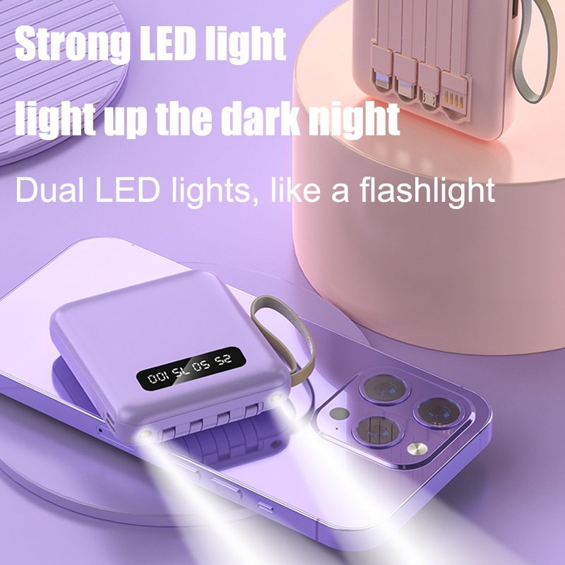 【SG Local Stock】20000mAh Power Bank Portable With 4 Wires LED Flashlight