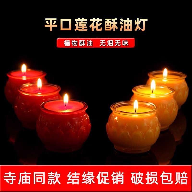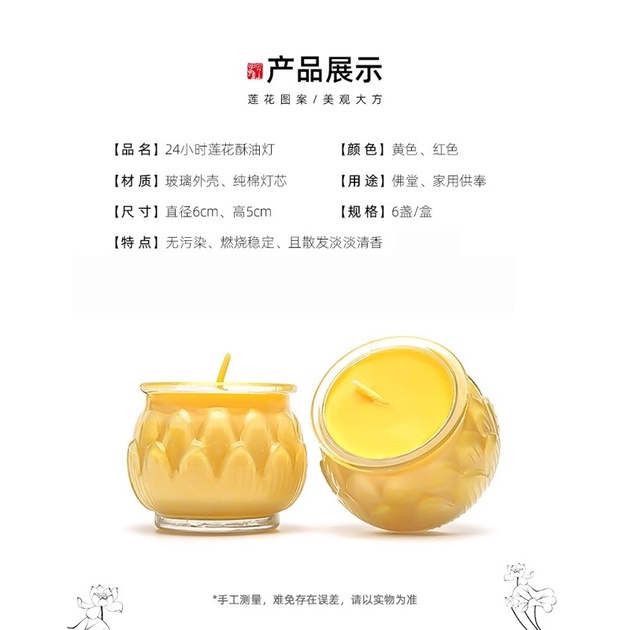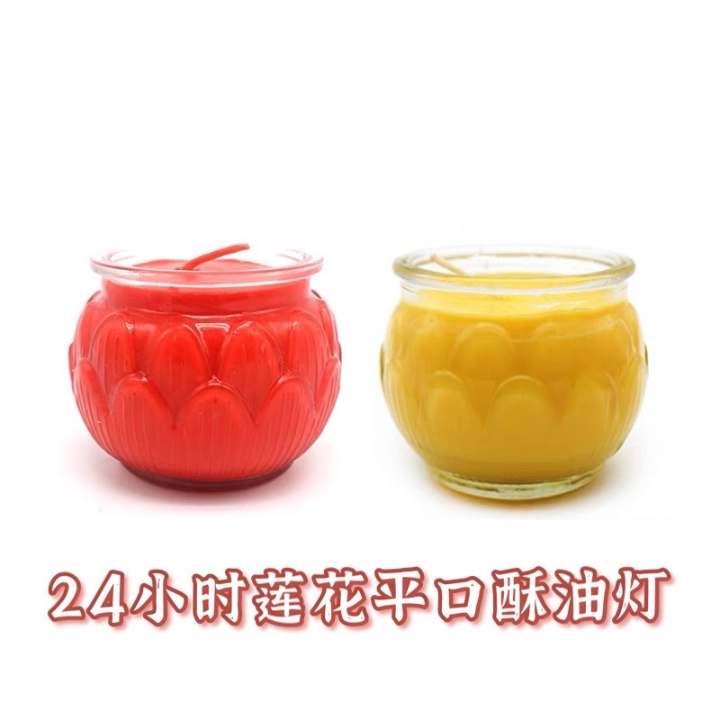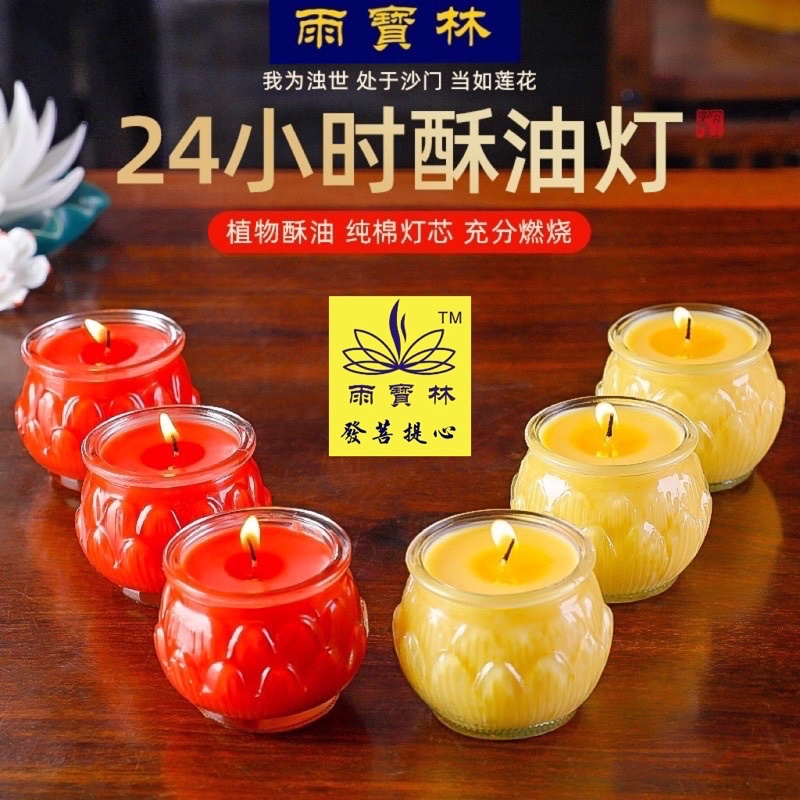 【SG Seller】【雨宝林】 【自在园总代理】Smokeless Candle 24 hours Lotus Shape Glasses Veg Oil Praying Butter lamp Candle莲花酥油灯24小时玻璃