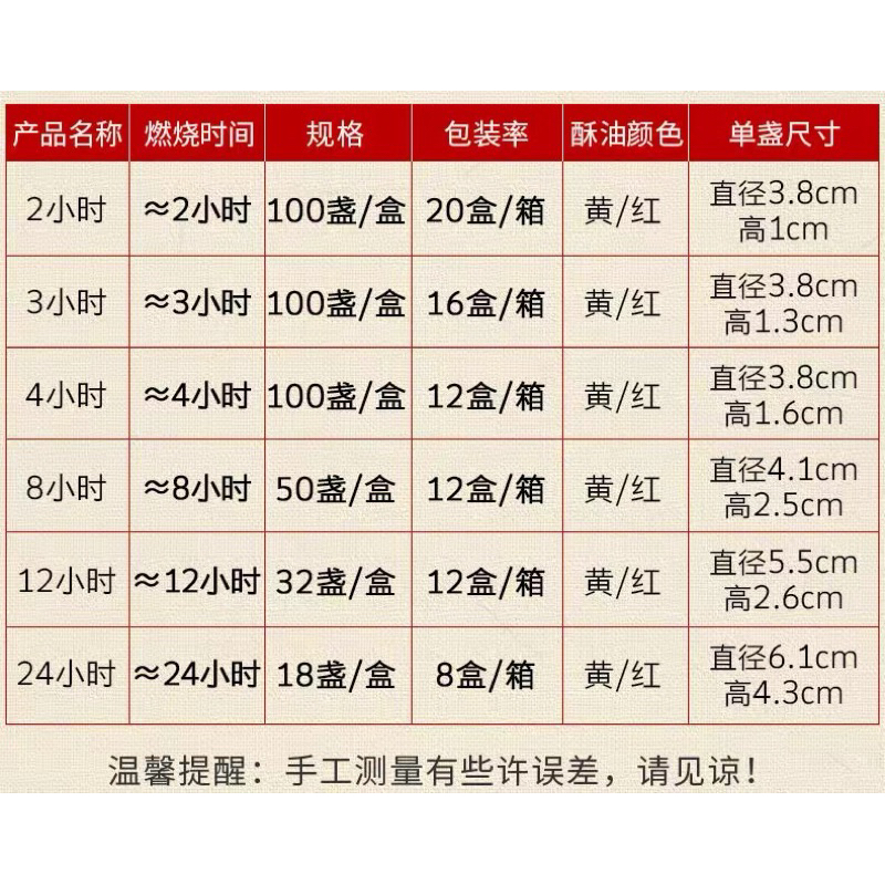 Quality:4hrs 100pcs Suitability:yellow Thanks seller for your fast deliver , on time for me.. today my candles left last pcs for offering.. U are on time send to me for my offering tomr.. Packing was good ??? Thanks seller ??? 感恩