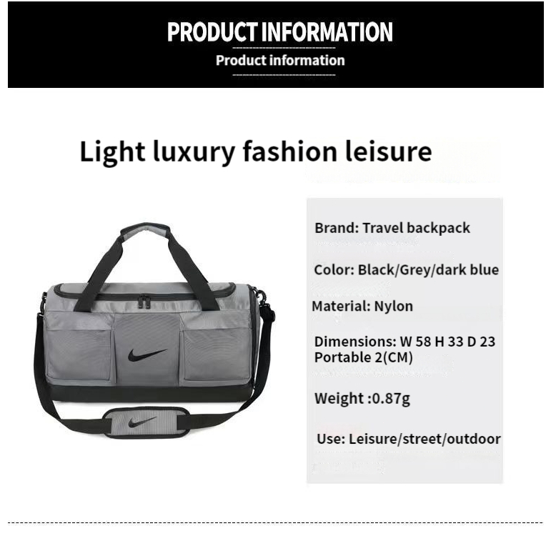 Suitable Occasion:going overseay Styling:gym use Capacity:enough for anything a guy needs the bag is nice not as big as what i expected but big enough